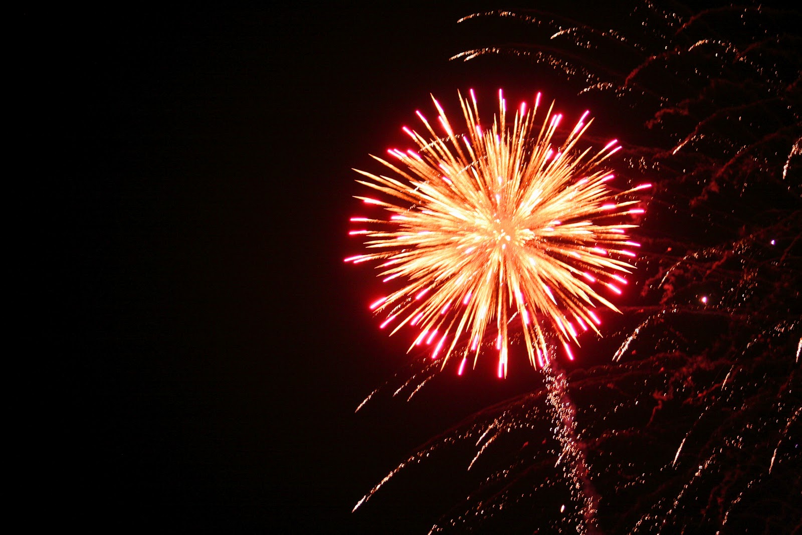 Fourth of July is one of my favorite holidays. It's in the middle of summer, so you are getting used to not being in school and there's a sense of freedom in the air; everyone just seems more relaxed in the summer. Fourth of July barbecues are always amazing. There is, of course, my favorite part, the fireworks. I am happy to say I have never seen Fourth of July fireworks on TV. Since early childhood I have always watched them in person (much better than seeing a bunch of bright pixels on the screen), and I have always enjoyed it. Last summer I experienced them in Burlington and they were spectacular. They were, unfortunately, very hard to photograph. But they weren't bad considering it was my first time shooting them.